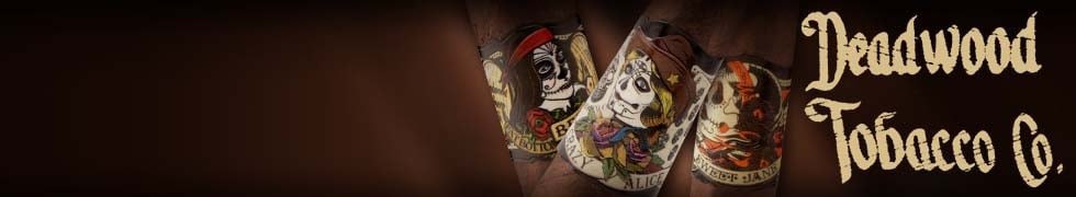 Deadwood Cigars were originally released by the Deadwood Tobacco Company in the legendary town of Deadwood South Dakota . Owner Vaughn Boyd teamed up with Drew Estate to create a line of premium cigars specifically for the locals that frequented his famous Deadwood Tobacco Co. Cigar Bar and smoking lounge. Now a regular production line available everywhere, Deadwood Tobacco Co. Cigars are expertly handcrafted at the prestigious Drew Estate factory in Nicaragua using a very dark and oily maduro wrapper that sits atop aromatic and exotic tobaccos that bring out the natural sweetness of the cigars. In keeping with Drew Estate’s unconventional and edgy branding names, Deadwood Tobacco Co cigars are available in crazy monikers called Fat Bottom Betty, Sweet Jane, Crazy Alice, Leather Rose, and Baby Jane. Medium-to-full-bodied, and laced with unique flavors of anise, pepper, earth, dried fruit, and some floral tones on the backend, these tasty sticks simply scream Drew Estate! If you are looking to step out of your comfort zone and enjoy a smoke that’s truly unlike any other, then be sure to pick up your favorite size and packaging of Deadwood Tobacco Co cigars from yours truly today.