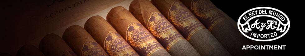 It's a well-produced, complex flavor profile that fills every area of the palate. Expect earthiness backed by the signature Cameroon spice. There’s also a sweetness in the background, plum, dark fruit, and a faint creaminess to round out the profile. Available in a box of 20 cigars, the El Rey del Mundo Appointment comes in three sizes, the Appointment Robusto 5x50, the Appointment Toro 6x54, and the Gordo 6.5x60 tops the list. If you’re looking for something that delivers flavor and balance without tipping into boutique pricing, the El Rey del Mundo Appointments is a strong choice. You’re getting a premium-style blend backed by an established name in the industry; a hard combo to beat and one worth adding to your humidor. Order yours at JR Cigars.